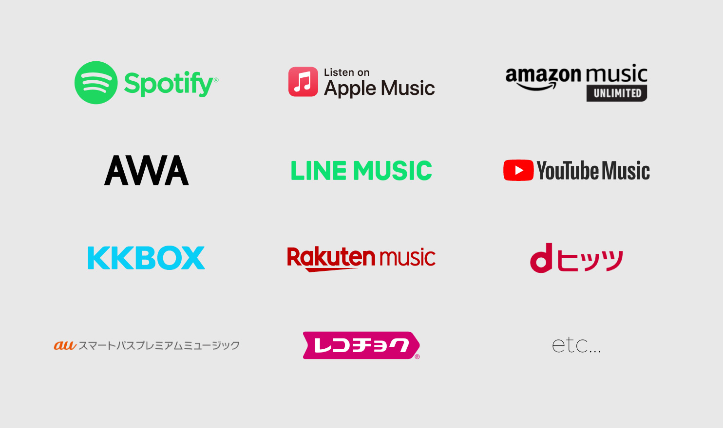 国内外の主要DSP(Spotify / Apple Music / LINE MUSIC / TikTok など)への配信に対応しています。