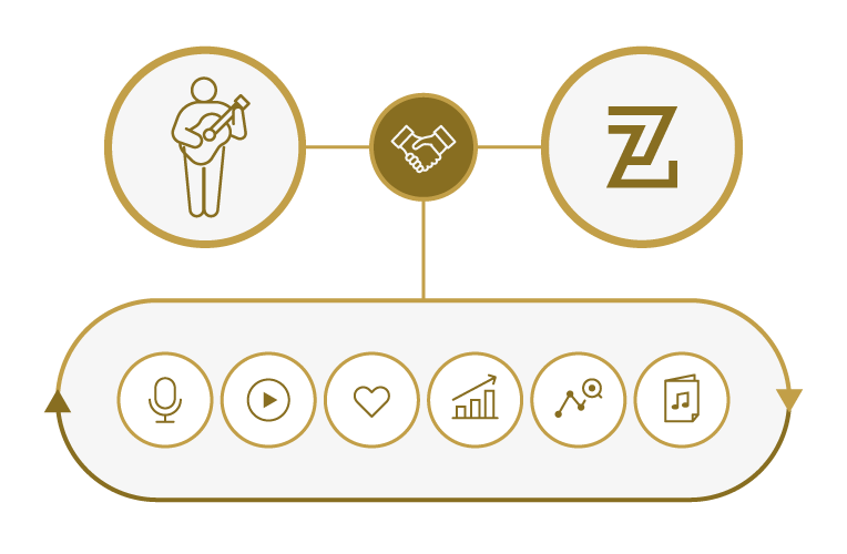 独自開発の配信管理システム「Zu-MAP」をはじめ、配信準備からアフターフォローまでをワンストップで提供。アーティスト・レーベルの価値を最大化するために、経験豊富なチームが最適な施策を提案・実行します。